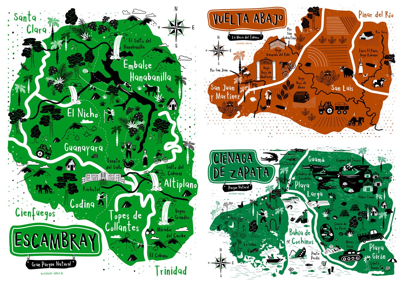 Know Cuba First is a personal project, an illustrated map series of Cuba, created after a road trip across the island in a camper. The collection highlights ten of the country’s most captivating regions and points of interest — from historic cities and coastal landscapes to natural reserves and cultural landmarks.